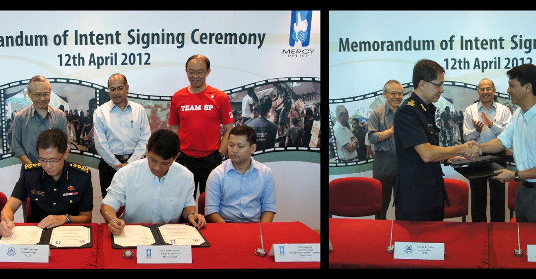 Two of Singapore’s active humanitarian responders to regional natural disasters – Mercy Relief (MR) and the Singapore Civil Defence Force (SCDF) – took the initiative to synergise their resources and networks through a Memorandum of Intent (MOI), laying the scope of humanitarian cooperation which includes enlarging and nurturing the pool of future humanitarians.